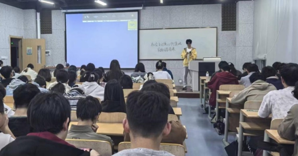 活动围绕社会主义核心价值观的实践内涵,组织优秀学生代表结合学业发展、志愿服务、社会实践等经历展开分享,通过鲜活事例展现“爱国、敬业、诚信、友善”等价值理念在青年成长中的生动体现。其中,刘立坤同学以《以志愿微光,燃青春担当》为题,讲述了自己参与志愿服务的经历与思考,诠释了在奉献社会中践行“和谐”“友善”的精神追求,并号召广大同学以实际行为传递温暖、承担责任,彰显新时代青年的价值担当。互动交流环节,同学们踊跃发言,围绕“如何在日常学习生活中践行核心价值观”“如何平衡个人发展与社会贡献”等话题展开热烈讨论,进一步明晰以实际行动践行核心价值观的路径,坚定青春筑梦、实干担当的信念。