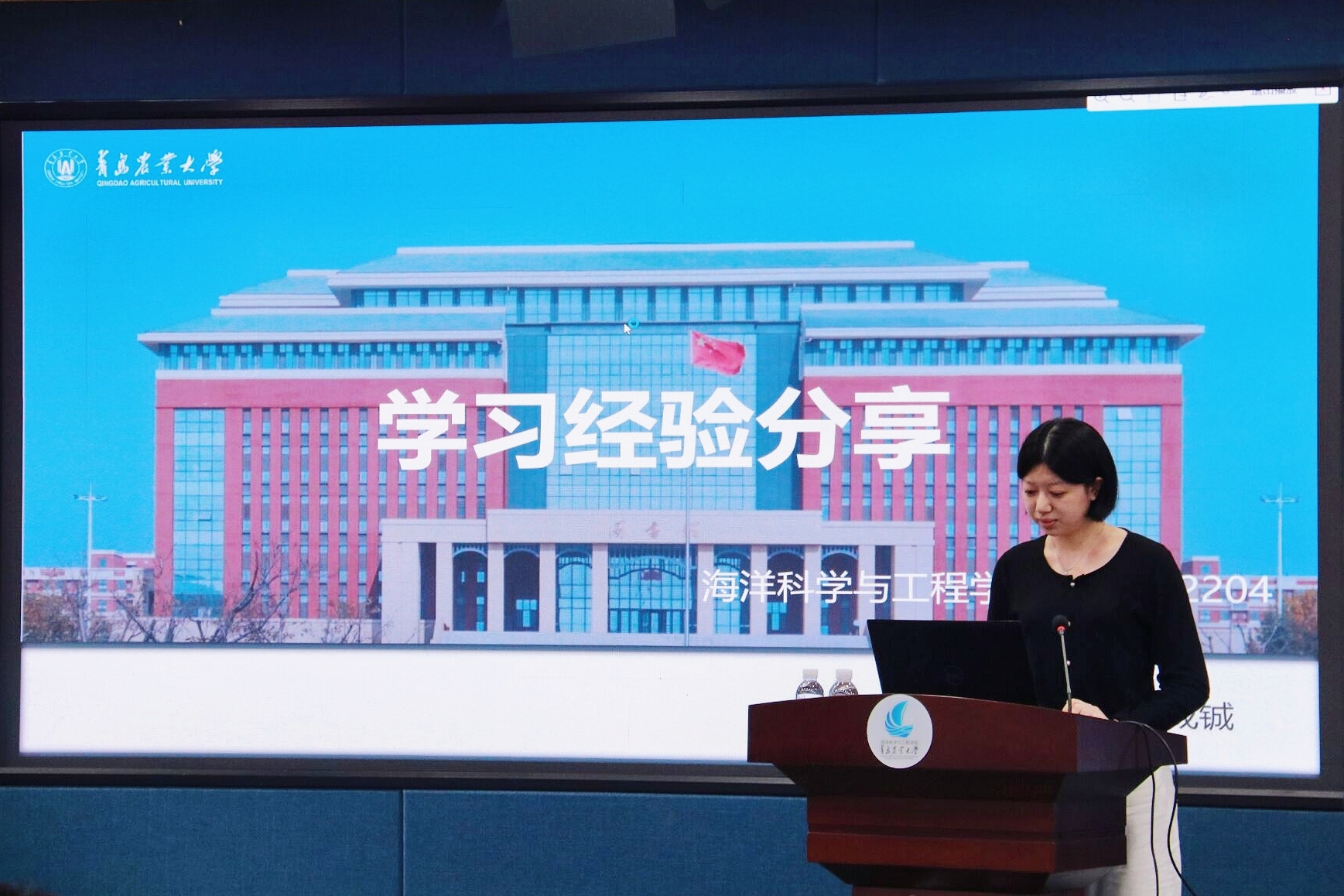 会上,组织学生干部集体观看学习了习近平总书记关于海洋强国论述的相关视频以及中国工程院院士麦康森教授的访谈视频。水生动物医学专业2201班团支书、学生会主席团成员解婉婧作为学生代表交流分享。她表示海洋学子应紧密结合学科优势提升专业本领与担当能力。她呼吁同学们:一是要夯实专业根基,学好专业课程、掌握前沿科技;二是要积极投身科研与实践,参与科研项目和竞赛;三是要增强国际视野,为海洋强国建设贡献青春力量。随后,水产养殖学专业2204班宣传委员成铖进行学习经验分享。她强调要善用学习工具,课上紧跟老师思路,高效吸收知识;课下合理分配时间,既要及时巩固课堂内容,又要拓展学习。同时,她向学弟学妹们寄语,希望大家能把握好大学时光,在学习与成长中不断进步。