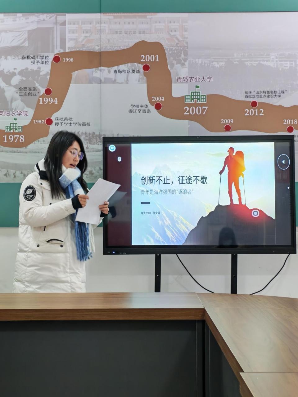 比赛紧扣“海洋”主题,鼓励选手围绕海洋科技、生态保护、历史人文、探险故事等方向展开讲述,并融入“创新”与“征途”两大核心元素。参赛选手在5至7分钟的演讲中,结合PPT、短视频、背景音乐等多种形式,以饱满的情感、生动的表达,深情讲述蔚蓝故事,畅谈海洋梦想,展现了海洋学子对海洋知识的深刻理解与真挚热爱。现场演讲声情并茂,感染力强,充分彰显了新时代青年关心海洋、保护海洋、探索海洋的责任与担当。经评委综合评审,水养2502班徐雪涵作品《海洋强国,有您有我》荣获一等奖;海资2501班邵安瑶作品《创新不止,征途不歇》荣获二等奖;水养2504班孙洪宇作品《蓝海征途:创新驶向未来》与艾章程作品《蔚蓝之心—创新与征途的永恒交响》荣获三等奖。